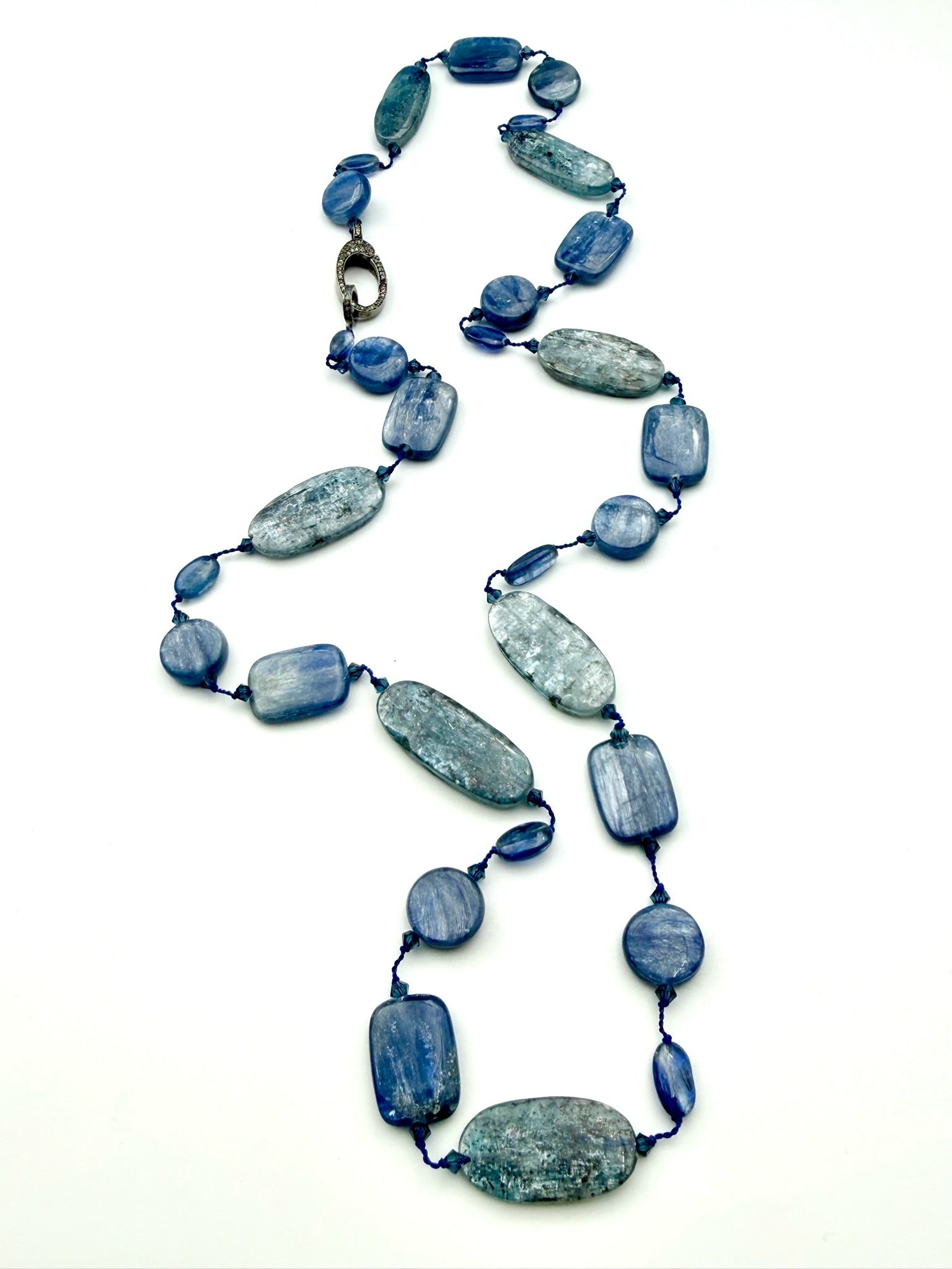 Multi Shape Natural Blue Kyanite Necklace with Sterling Silver and Diamond Clasp, 30"