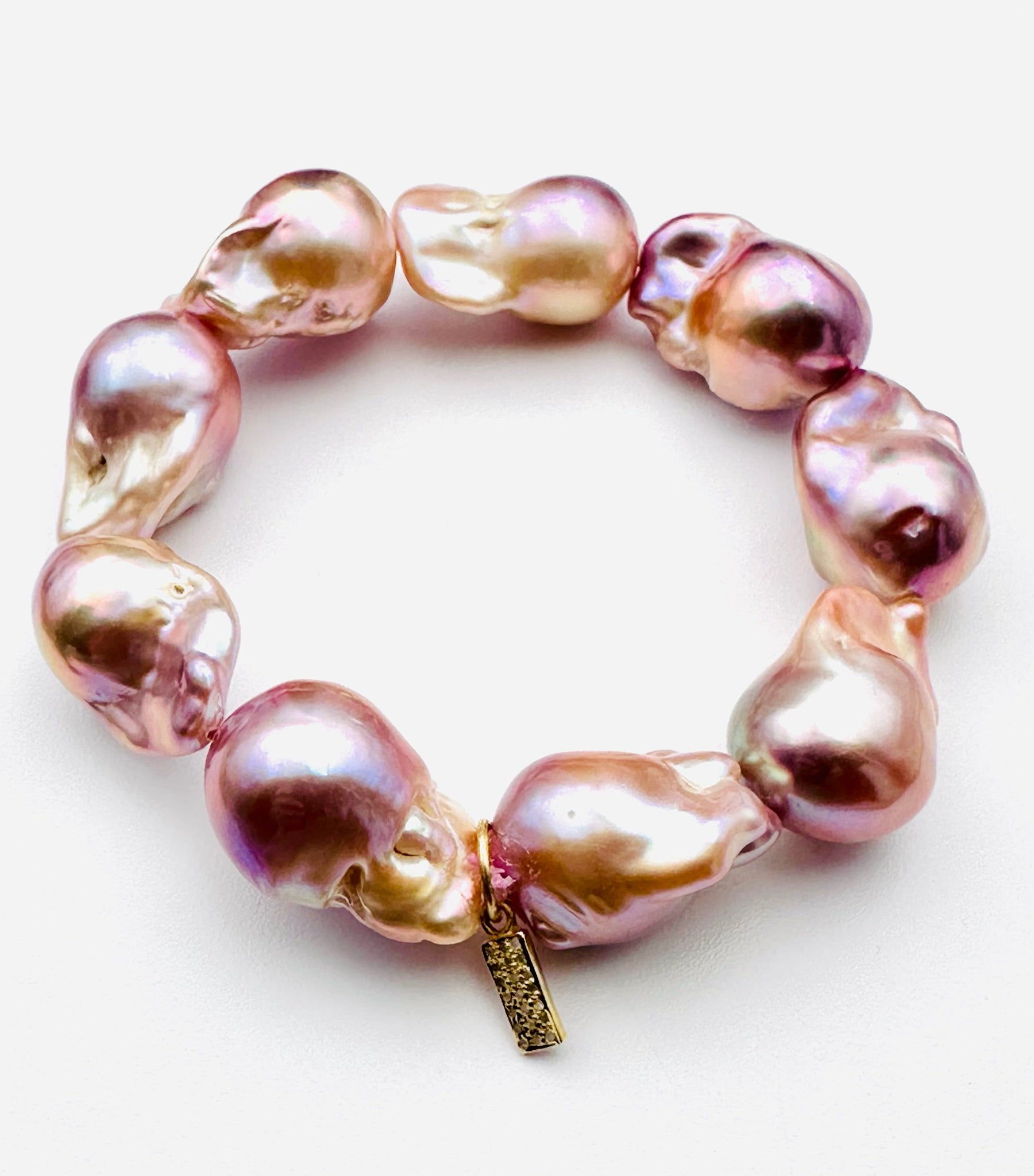 Natural Baroque Freshwater Pearl Stretch Bracelet with 18K Vermeil Petite Diamond Dog Tag