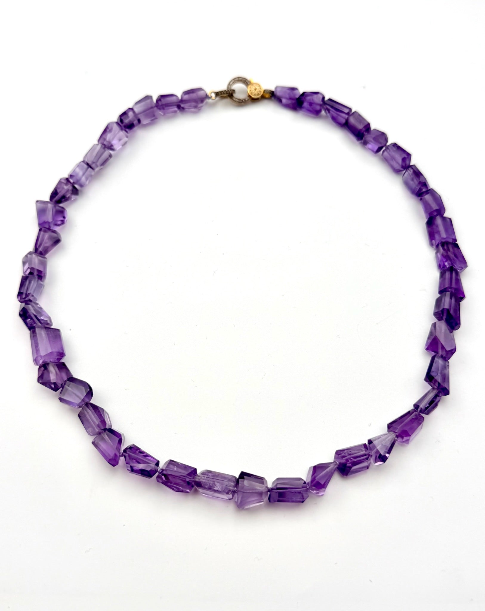 Organic Amethyst Necklace with 2 Tone Vermeil and Sterling Silver Diamond Clasp, 18"