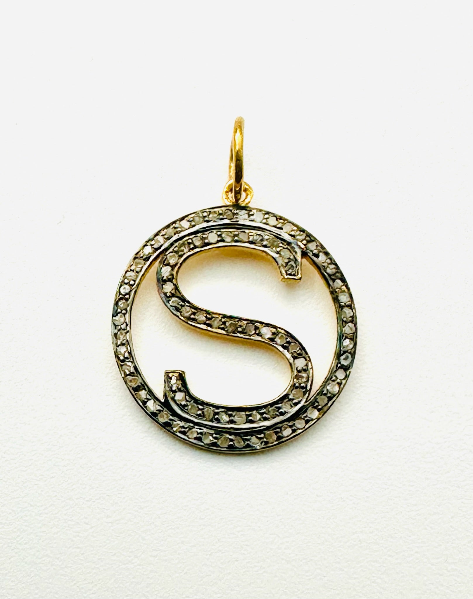 Pave Two Tone Round Initial Rhodium and Gold Vermeil Pendant