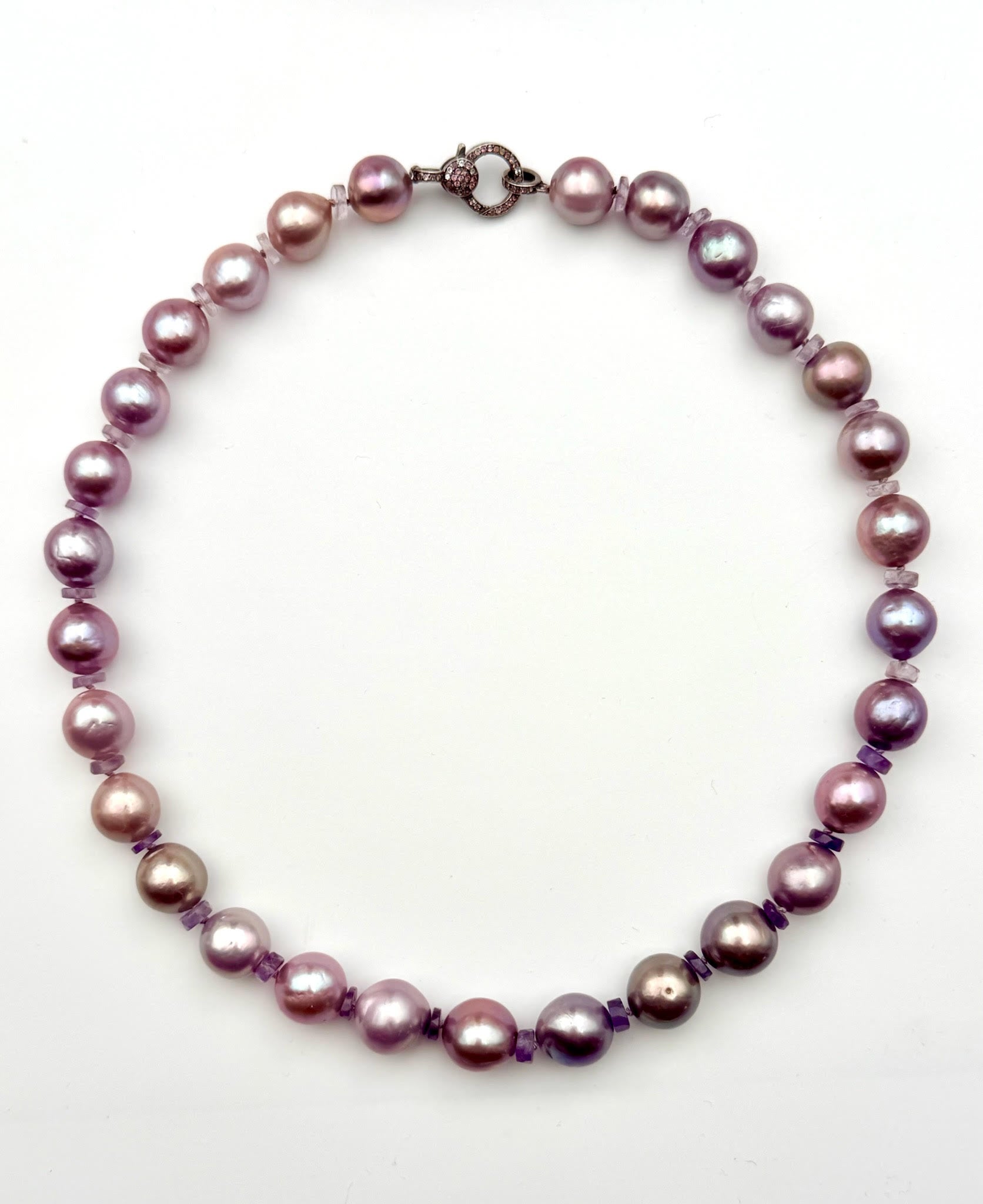 Purple Large Edison Freshwater Pearl, 11-13mm, with Ombre Amethyst Heishi and Sterling Silver Tourmaline Clasp, 18"