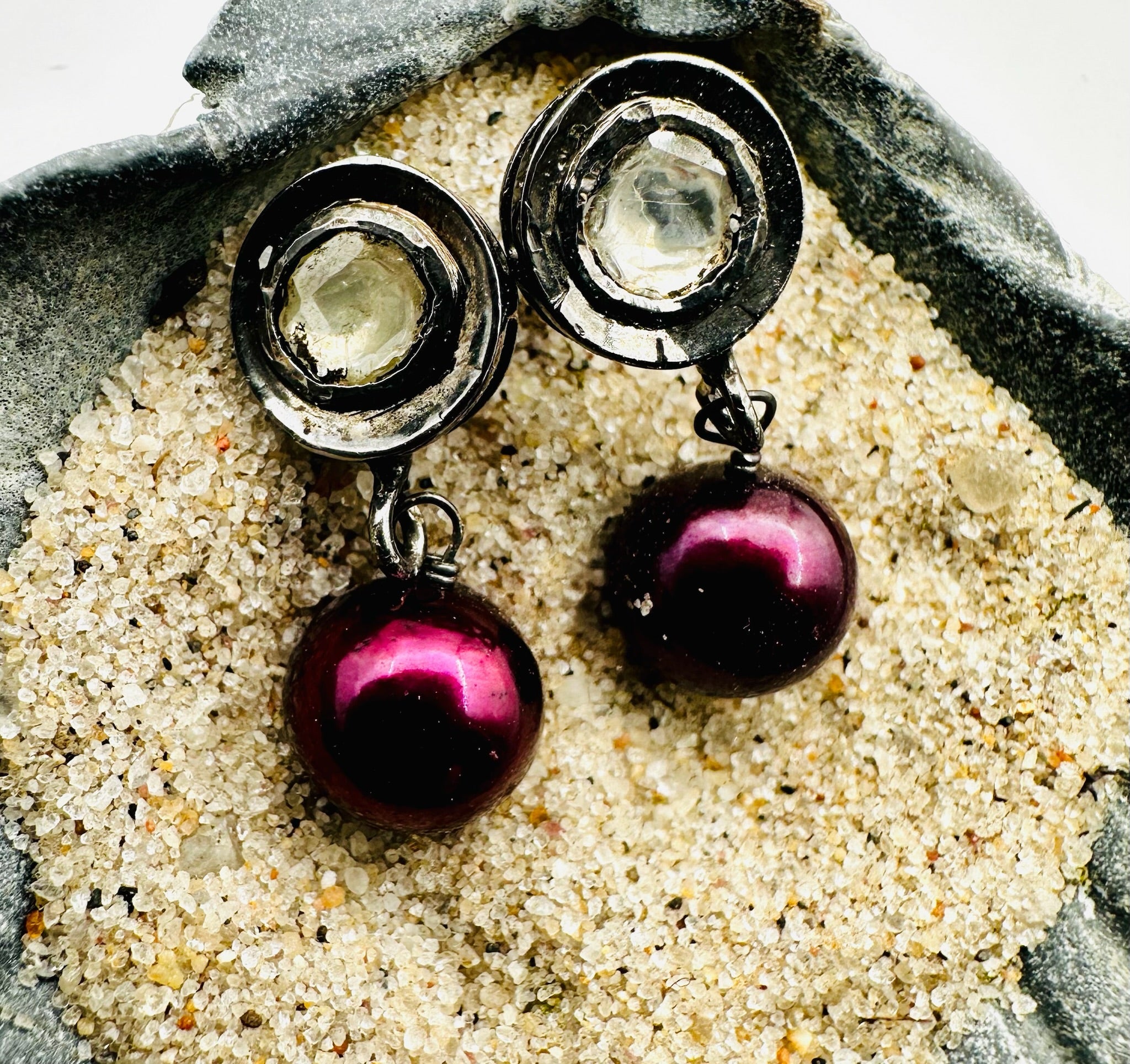 Round Plum Freshwater Pearl Earring on a Sterling Silver Raw Diamond Post, 1"