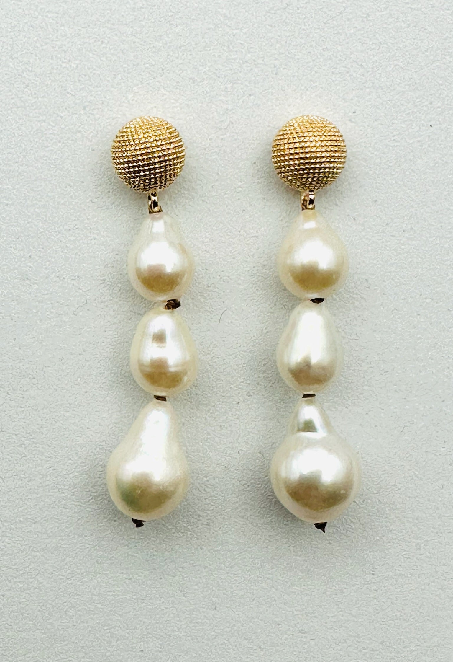 Small Medium Baroque Gold Faceted Textured Post Earring 2"