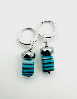 Sterling Silver Huggie Leverback Earring with Peru Boulder Opal Pyrite Drop 1.75"