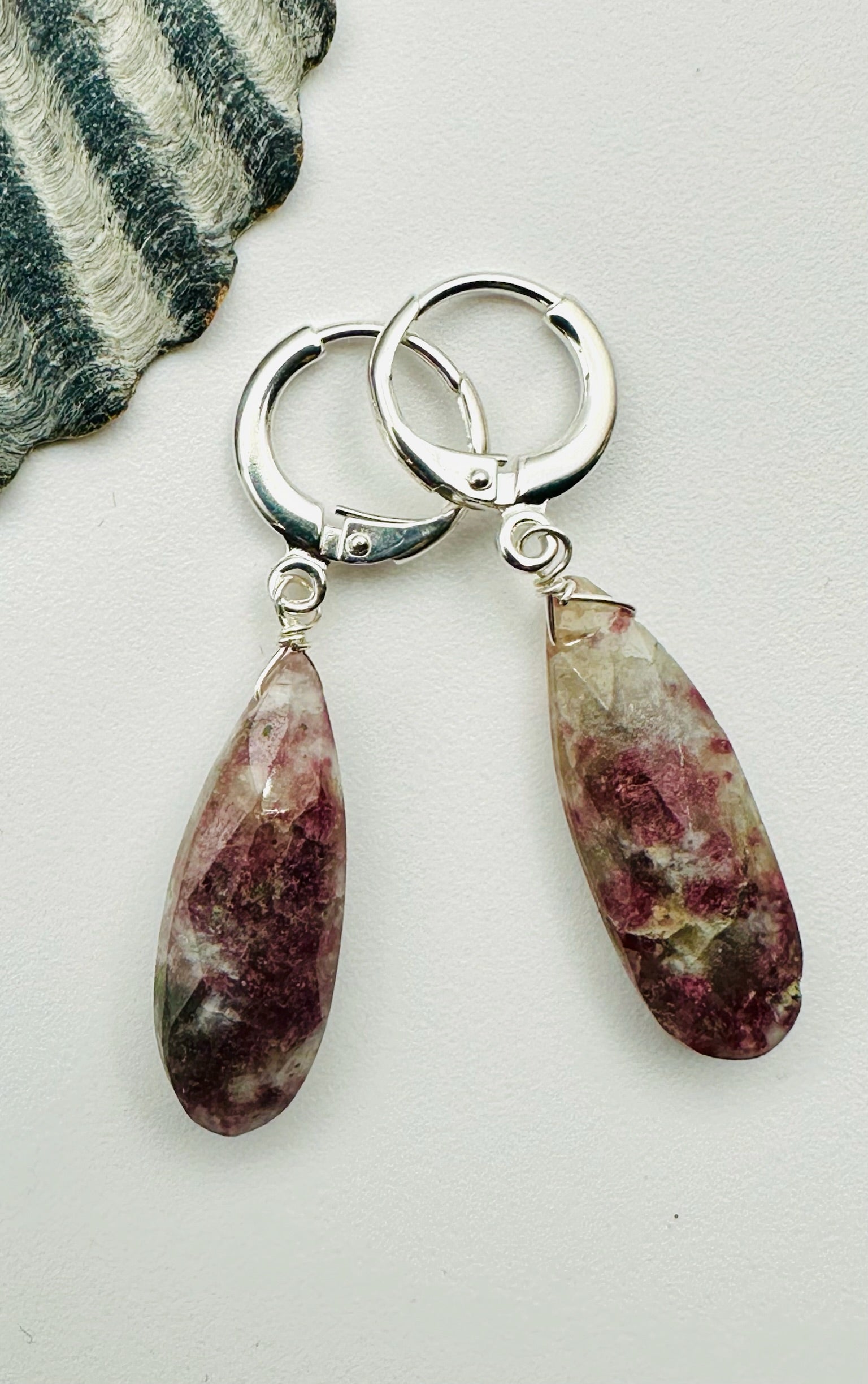 Sterling Silver Huggie with Faceted Pink Tourmaline Teardrop Leverback Earring 2"