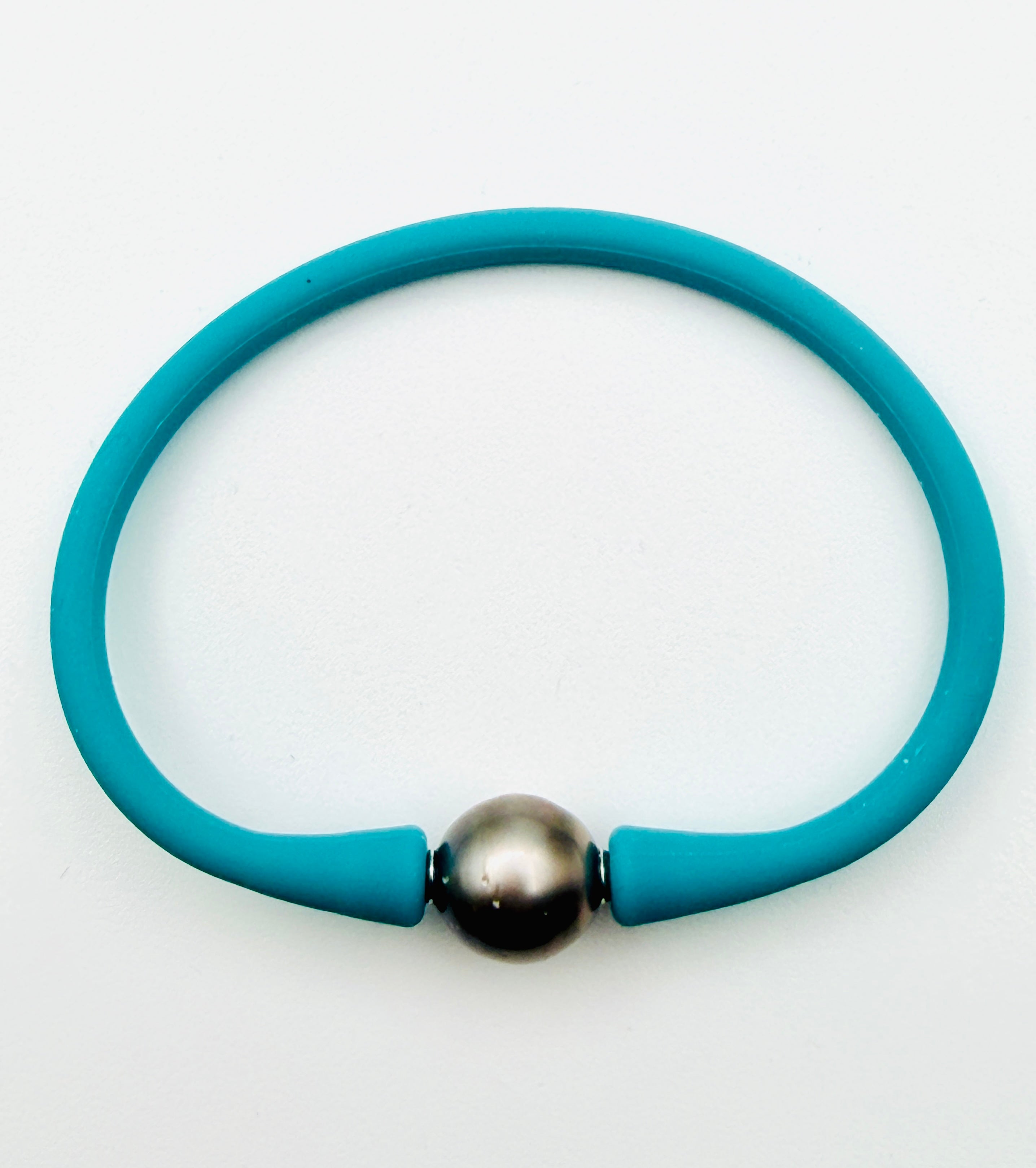 Teal Rubber Bracelet with Tahitian Pearl, 7.25"