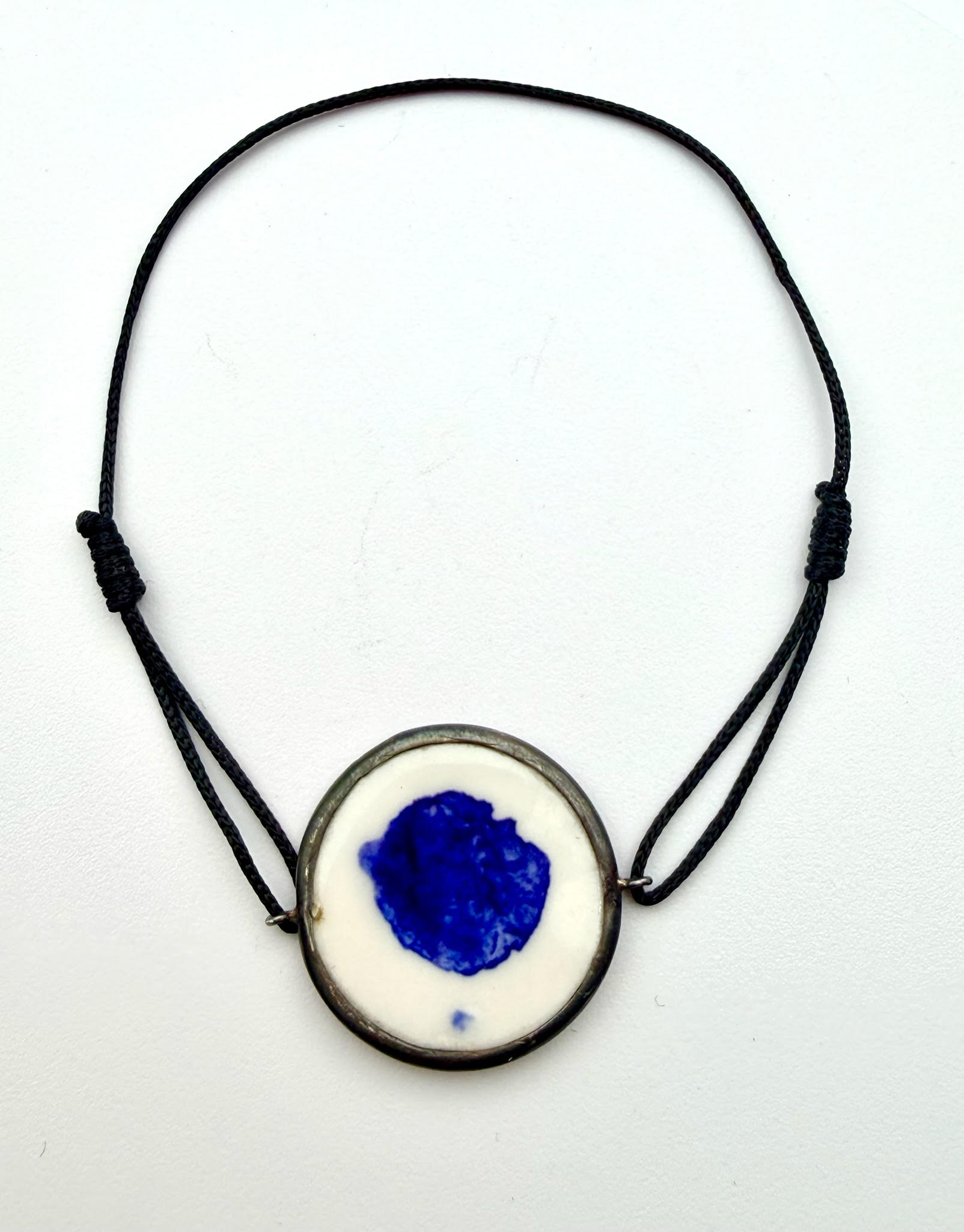 Turkish Sterling Silver Porcelain Evil Eye Adjustable String Bracelet