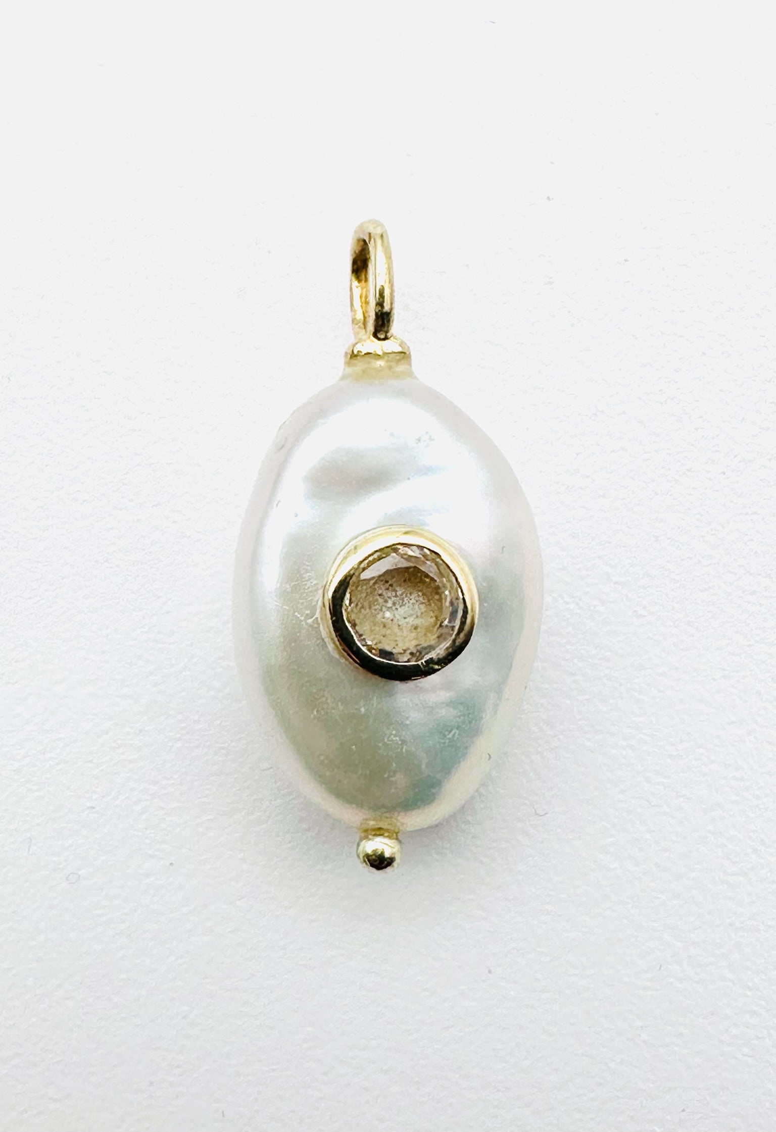 Vermeil (18k/sterling silver) Pretty Petite Freshwater Oval Coin Pearl Pendant, 1"