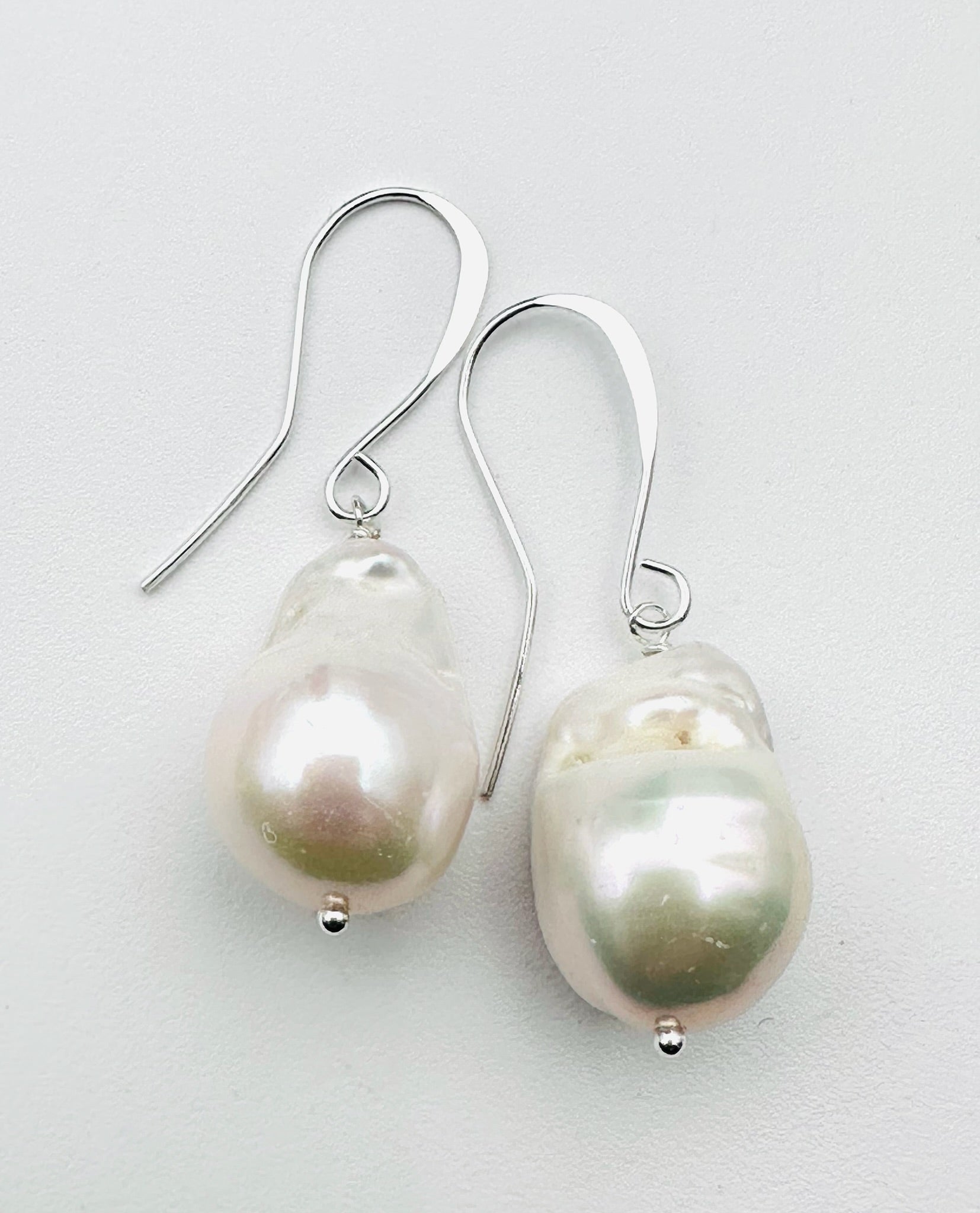 White Freshwater Baroque Pearl on Sterling Silver French Hook, 1.5"