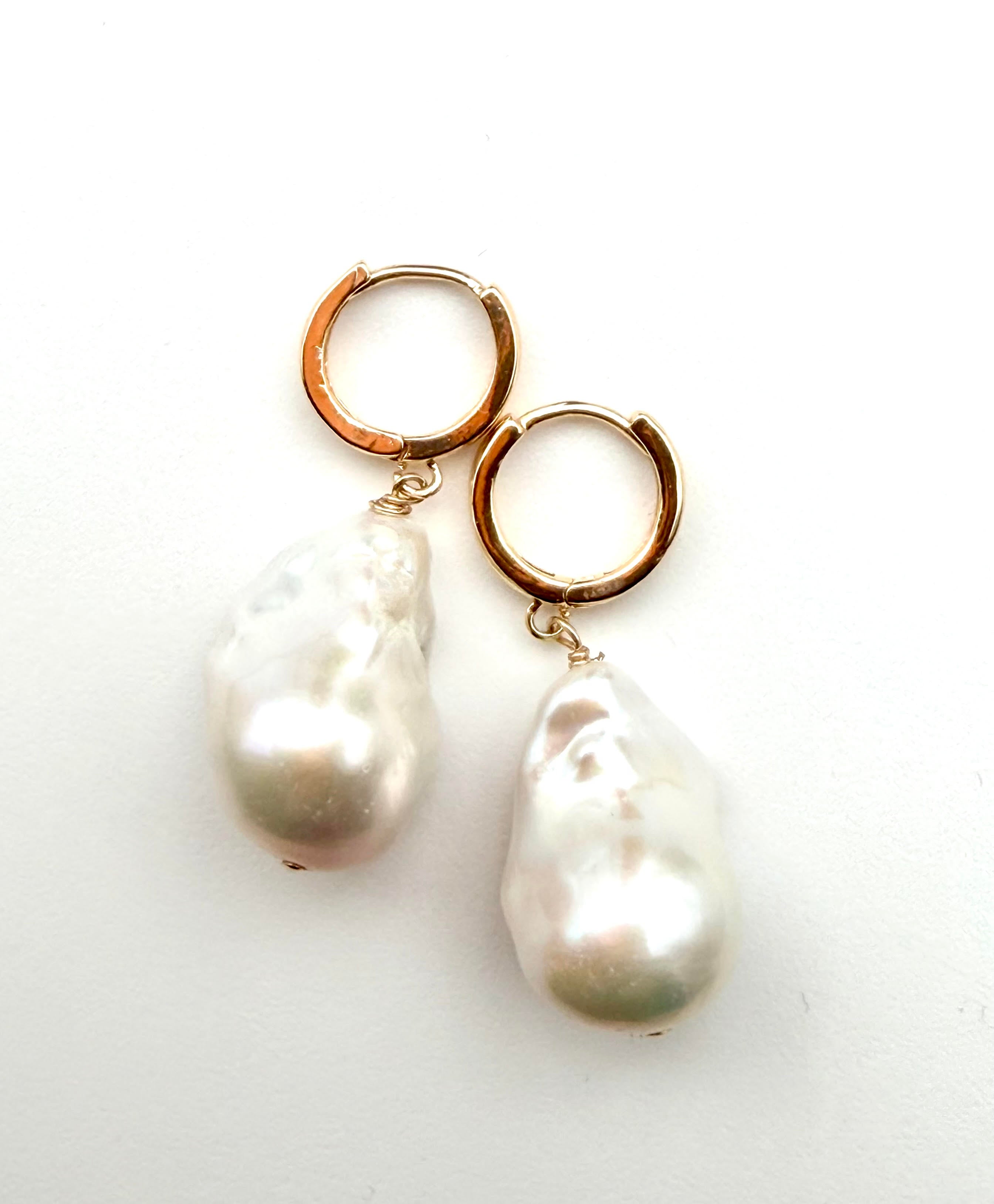 White Freshwater Baroque Pearl with 12mm Gold Fill Huggie, 1.5"