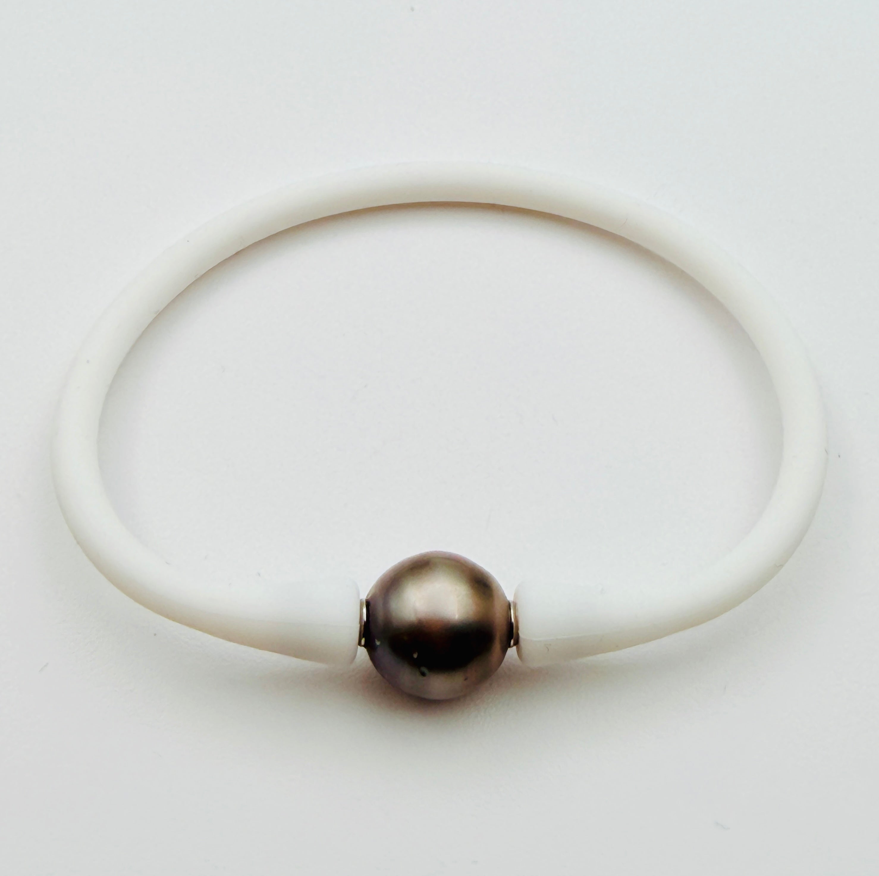 White Rubber Bracelet with Tahitian Pearl, 7.25"