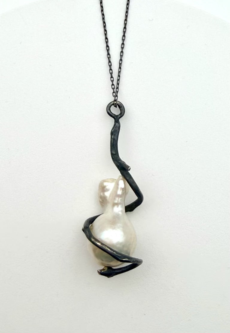 Wrapped White Freshwater Baroque Pearl on Rhodium Sterling Silver Chain, 22"