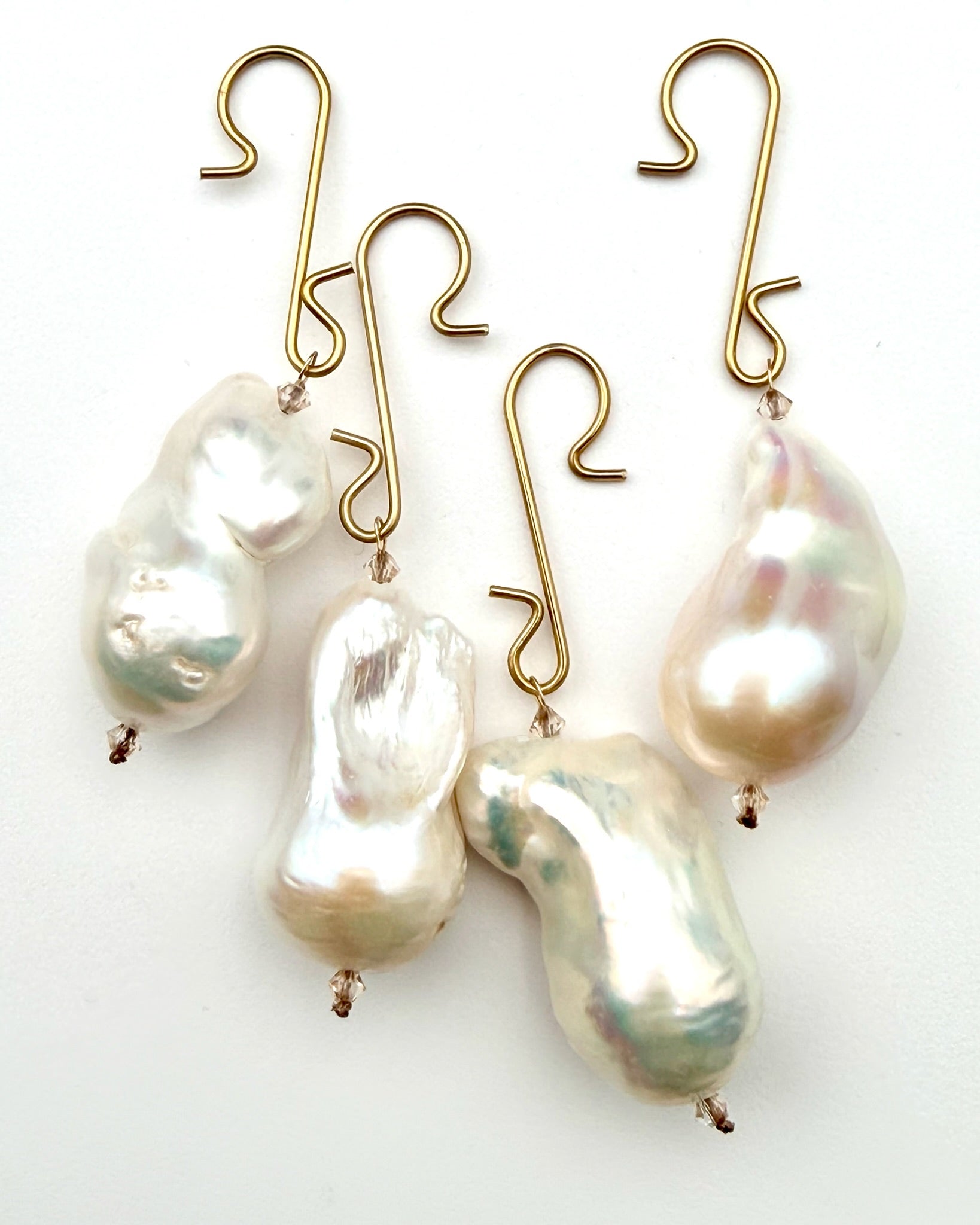XL Organic Shaped White Freshwater Baroque Pearl Ornament with Brass Hook, 2.5"